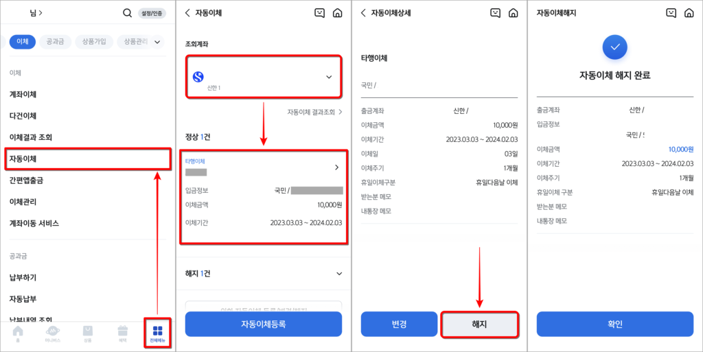 신한은행 자동이체 해지