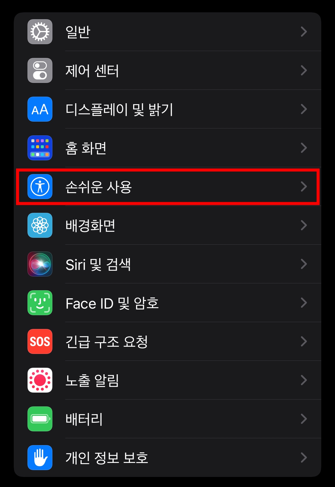 먼저 아이폰의 설정으로 들어가준 뒤, 손쉬운 사용으로 들어가주세요.