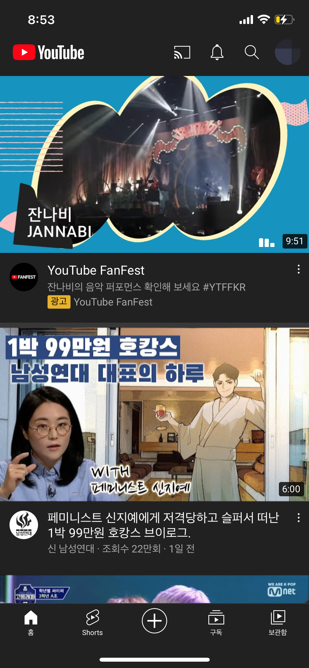 1. 유튜브 우측상단의 프로필 버튼을 눌러줍니다.