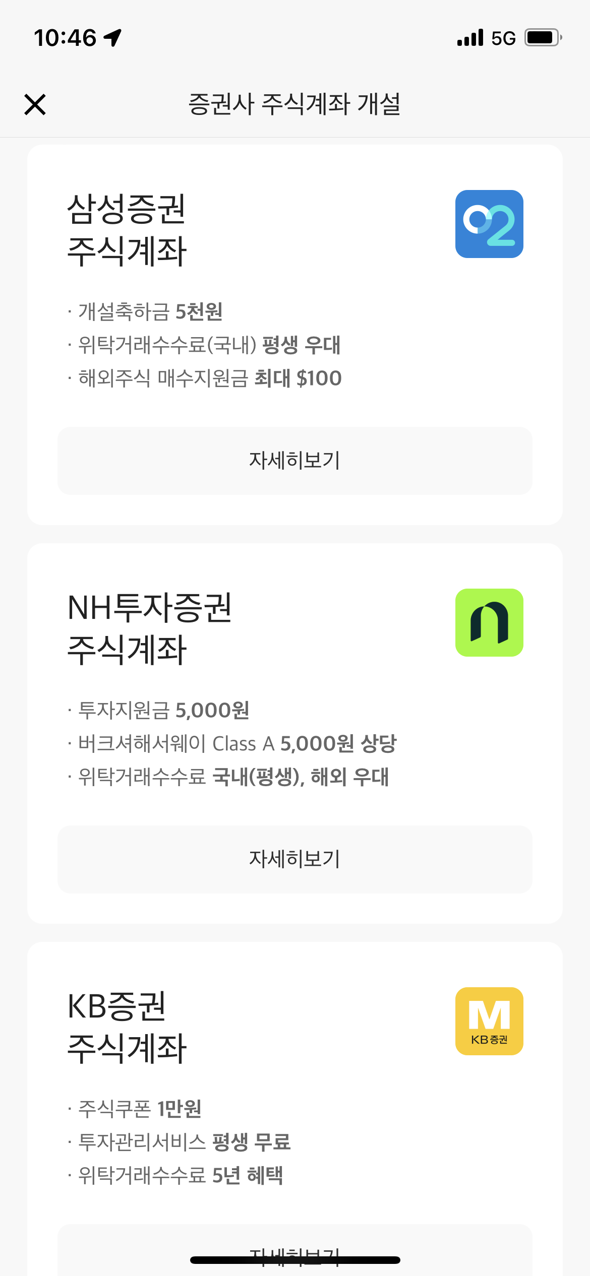 증권사에서는 서로 많은 고객을 유치하기위해 투자 지원금을 지급하는 이벤트를 진행하기도 하고, 기본적으로는 수수료 우대 이벤트를 진행하고 있습니다. 주변 사람들이 이용하는 회사를 따라가기보다 이런 혜택들을 비교해보고 자신에게 맞는 증권사를 선택하시기 바랍니다.
