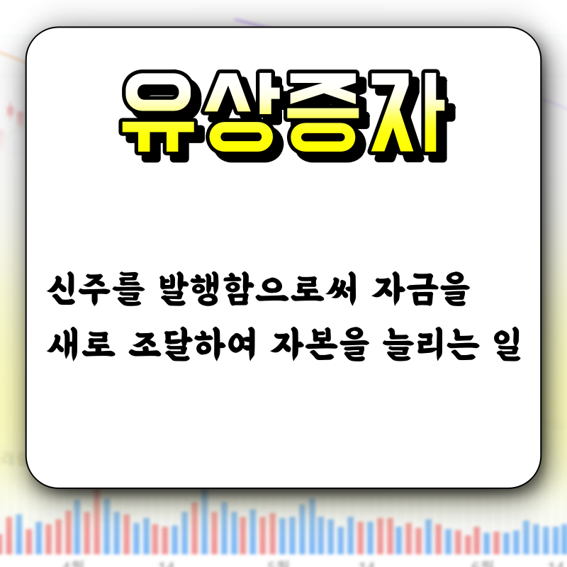 유상증자는 자본을 보충하기 위해 기업에서 주식을 새로 발행하여 돈을 받고 파는 증자 방식을 말하고 있습니다. 유상증자의 경우 앞에서도 말했듯이 전망이 좋은 기업이 실시한다고 했을 때, 새로운 사업 분야를 확장한다는 기대감을 이끌 수 있어 호재가 될 수 있습니다. 하지만 반대로 제대로 된 계획 발표 없이 유상증자를 실시하는 경우 기업에서 어떤 부분에 자금이 필요한지 알 수 없기 때문에 악재로 받아들여지기도 합니다.