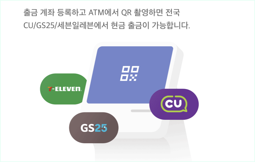 하지만 스마트출금 서비스의 경우 한정적인 ATM에서 이용이 가능하며, 현재 지원되고 있는 ATM은 CU와 GS25, 세븐일레븐의 편의점, 그리고 롯데마트 등이 있습니다. 전국적으로 해당되는 편의점에서 서비스를 이용해 볼 수 있으며, 일반적인 출금과 동일하게 수수료는 면제됩니다.