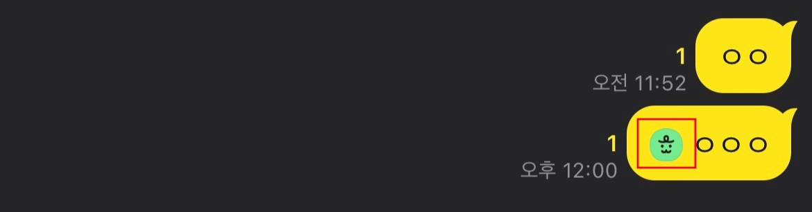 제가 예약 전송을 사용해본 모습입니다. 예약 전송을 하게되면 예약으로 보내진 메세지는 위의 이미지에 나오는것처럼 메세지 옆에 죠르디 이모티콘이 나오게되는데 상대방에겐 보이지 않으니 크게 신경쓰지 않으셔도 됩니다!