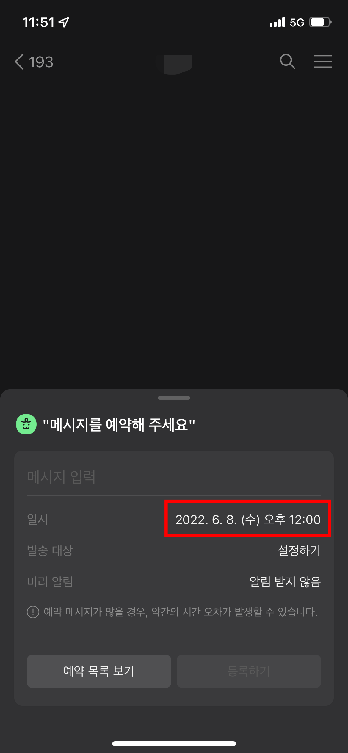 메세지 예약을 찾아주셨다면 위의 이미지처럼 화면이 나오게 되는데 원하는 메세지를 예약해주시면 된답니다.