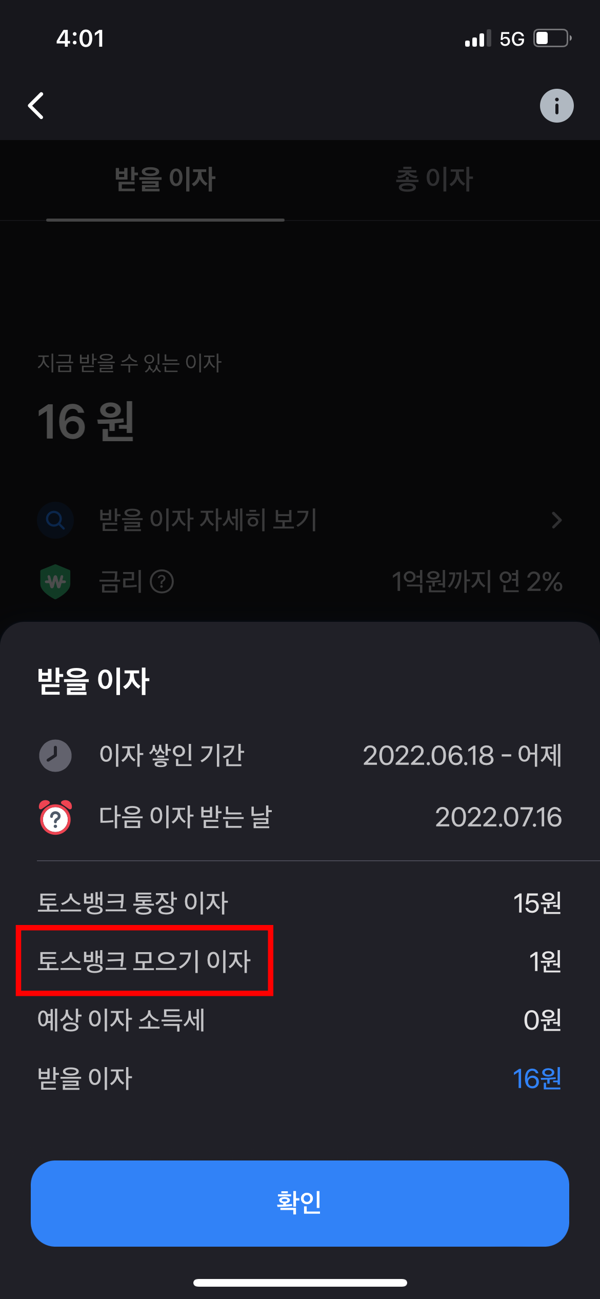 카카오뱅크와 동일하게 최대 1억 원까지 금리를 보장해주고 있고, 다르게는 연 2%의 금리를 제공해주고 있습니다.