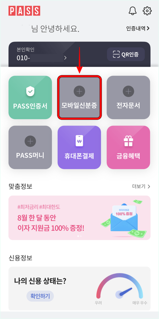 - PASS 앱에 접속한 뒤, 모바일 신분증을 선택해 주세요.