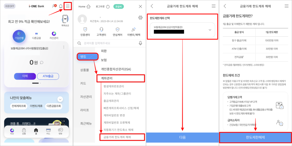 2. 기업은행 한도제한계좌 해제 방법