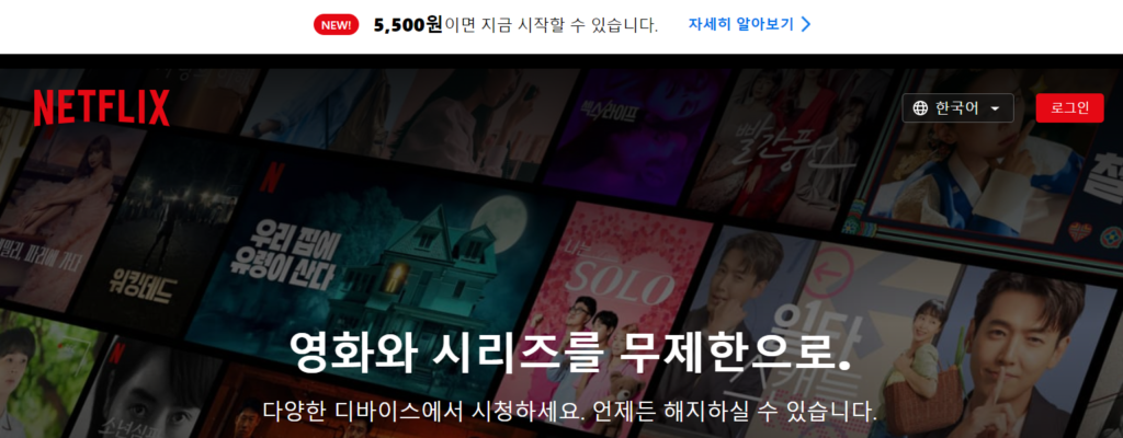 넷플릭스의 광고형 베이식 요금제는 비교적 최근에 출시된 요금제로 기존의 베이식 요금제에 가격을 낮추고 광고를 추가한 요금제입니다. 가장 낮은 요금제로서 월 5,500원의 가격으로 멤버십이 제공되며, 단 1명의 동시접속 및 시청을 허용하고 있는 요금제입니다.