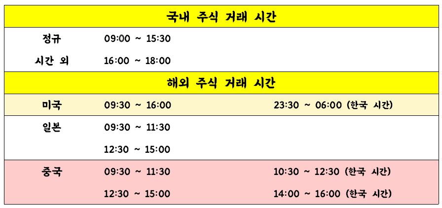그렇다면 주식을 거래할 수 있는 시간은 언제일까요?